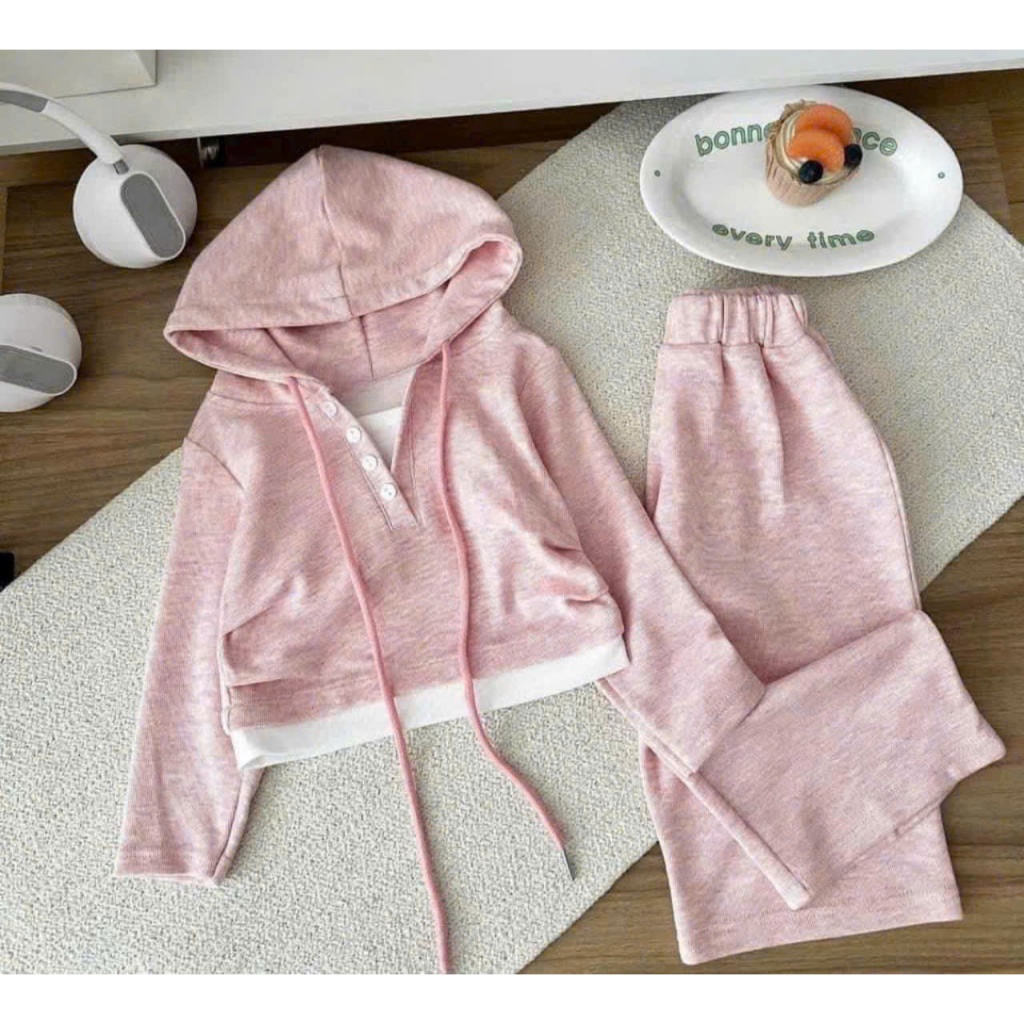 Sét len lông thỏ có mũ, bộ dài tay cho bé 10-30kg B0095 - HỒNG PHẤN - Size 1: 8